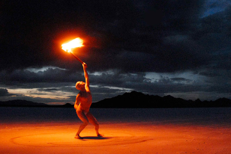 Dievision, 1995 Feuertanzperformance im Freien, Duett, ca. 35 min