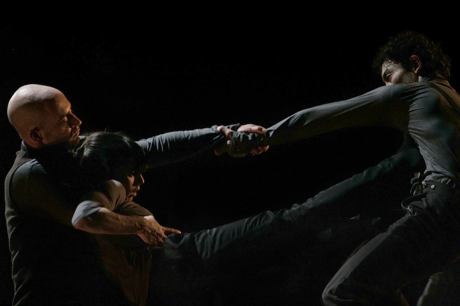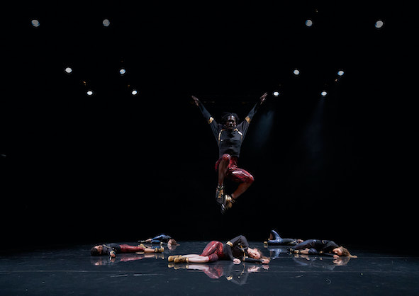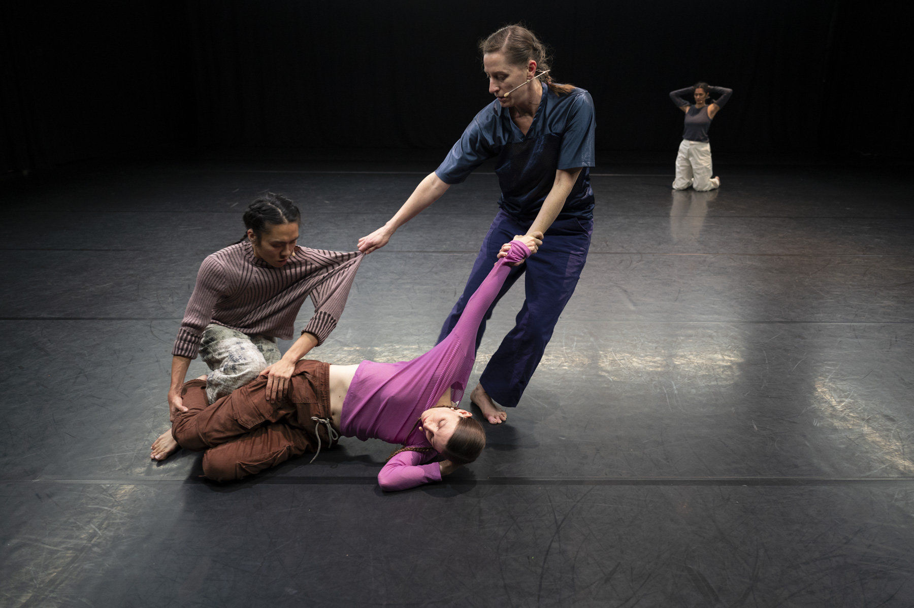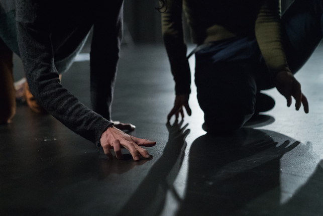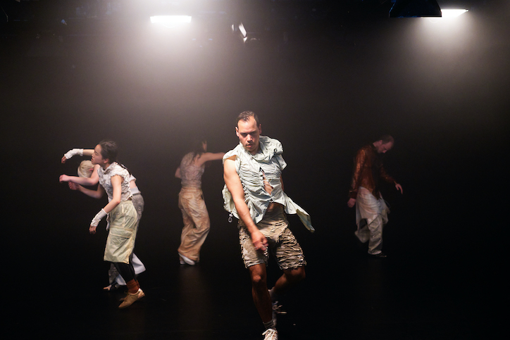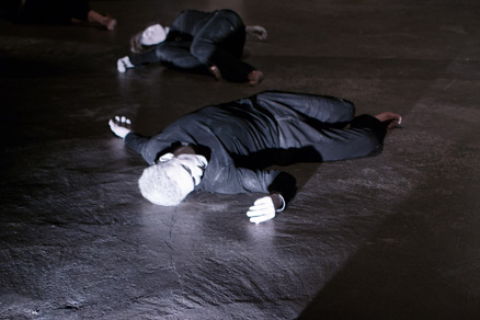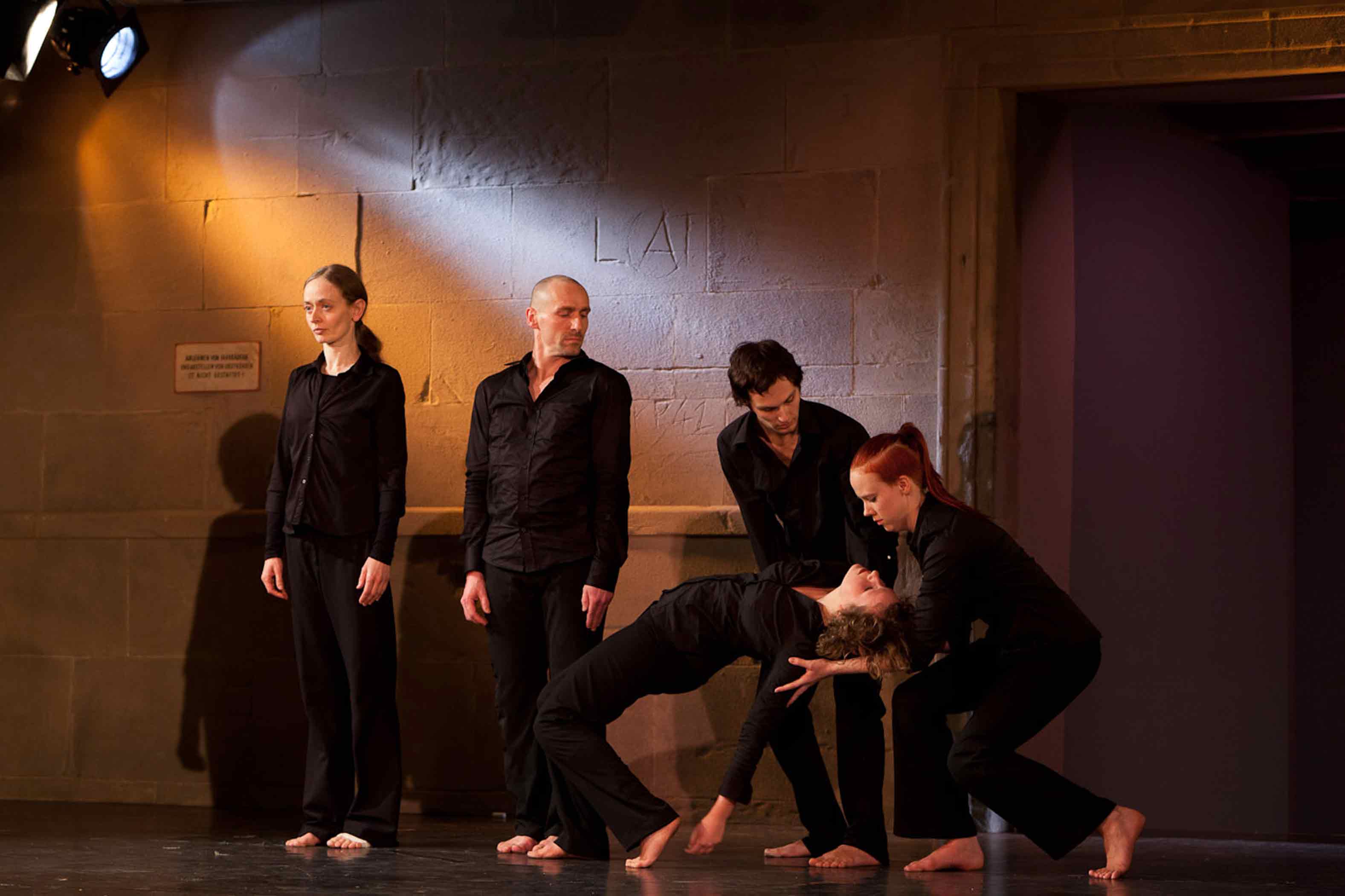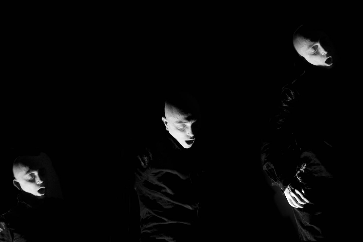 A BEGINNING #16161D schwere reiter Fünf Tänzer:innen und Sänger:innen agieren in nahezu völliger Dunkelheit. |