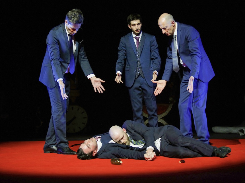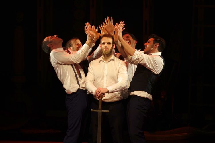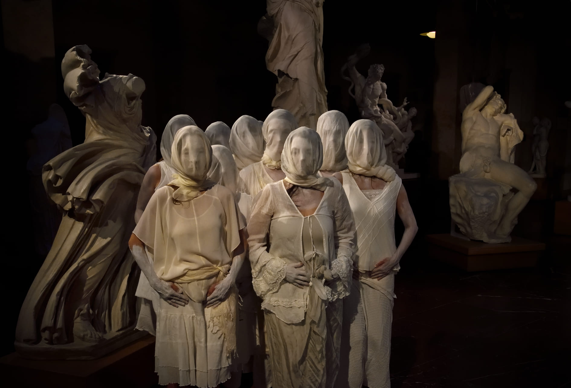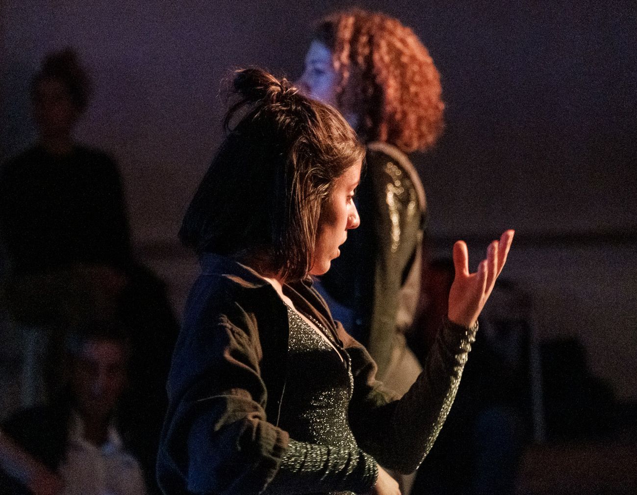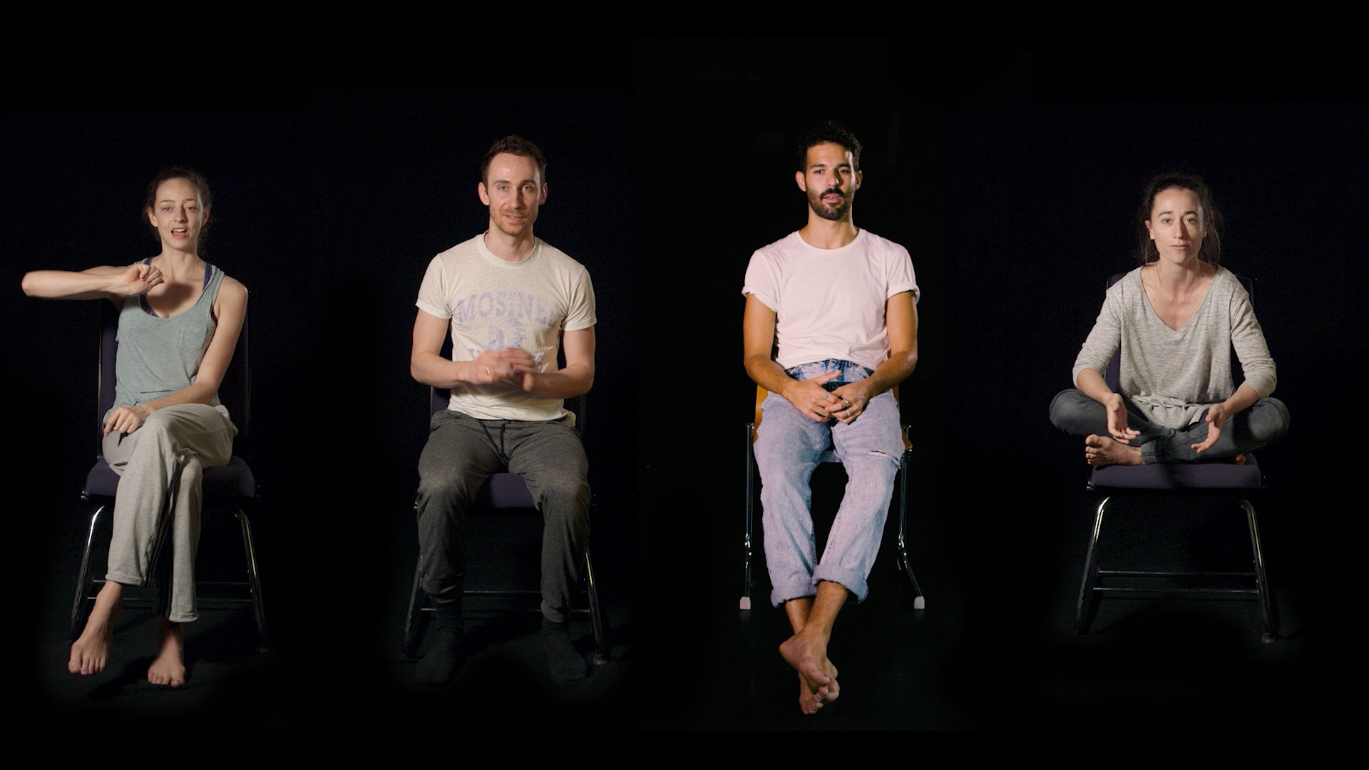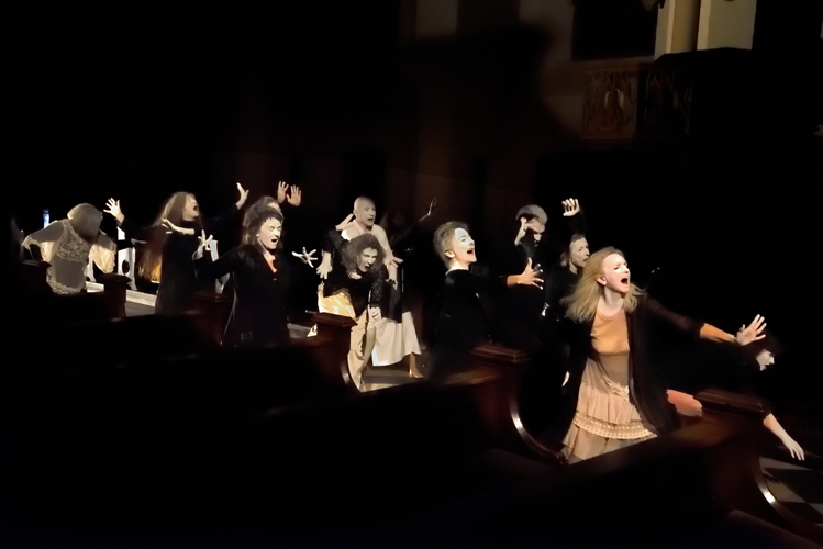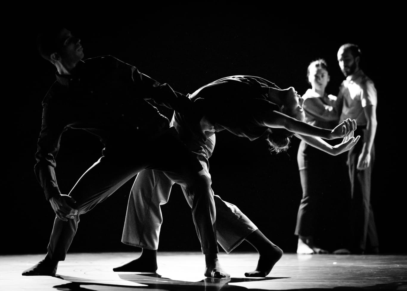 A BEGINNING #16161D schwere reiter Fünf Tänzer:innen und Sänger:innen agieren in nahezu völliger Dunkelheit. |