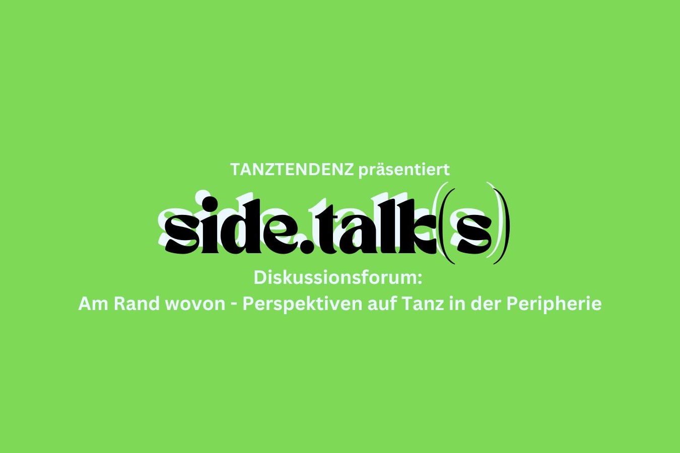16. November 2024 / 15:00 - 18:00 side.talks Diskussionsforum Peripherie im Tanz schwere reiter, Studio Diskussionsforum über Tanz in den verschiedenen Kontexten Peripherie vs. Zentrum. |